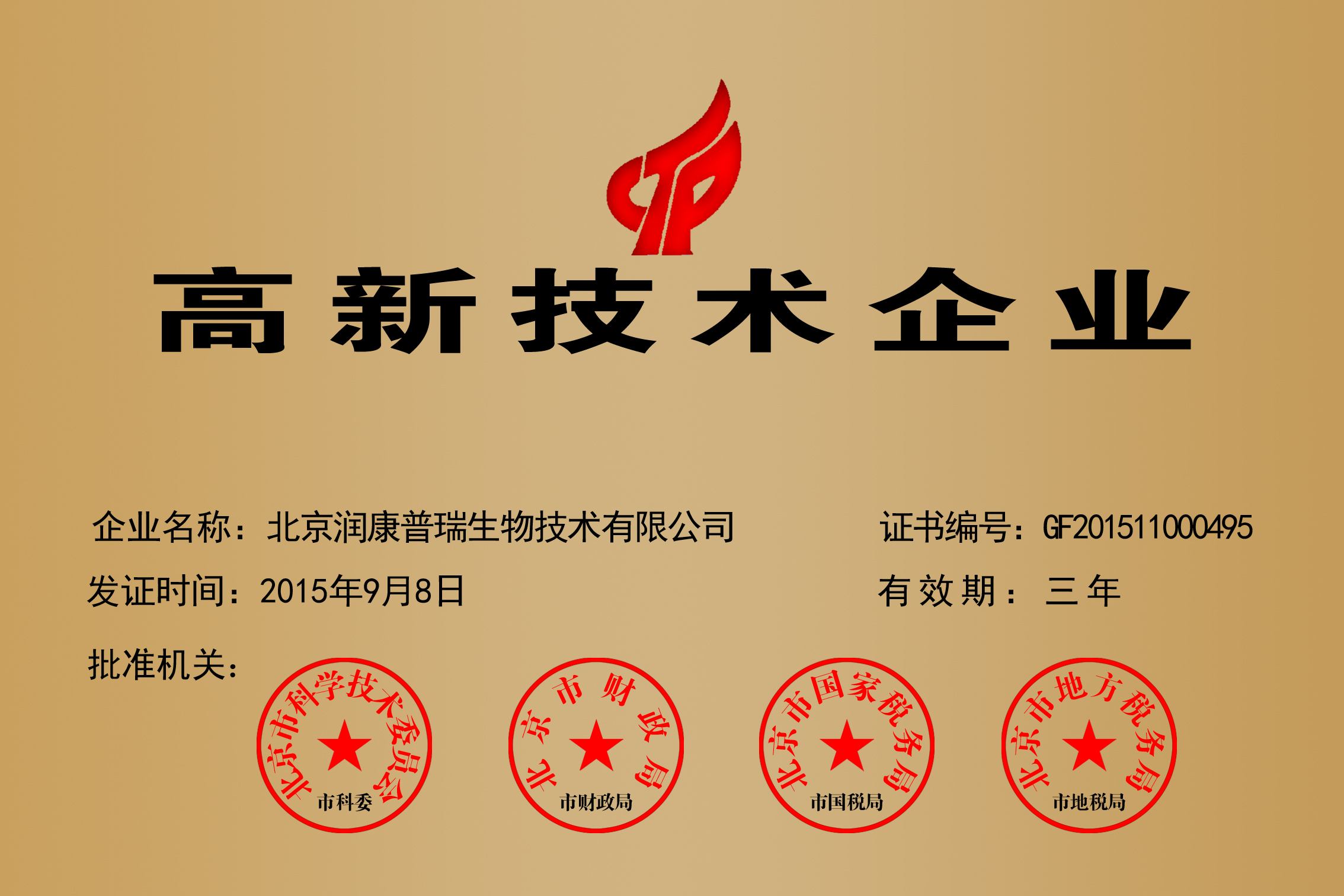 喜报 | 热烈庆祝润康普瑞第五次荣获国家“高新技术企业”...
